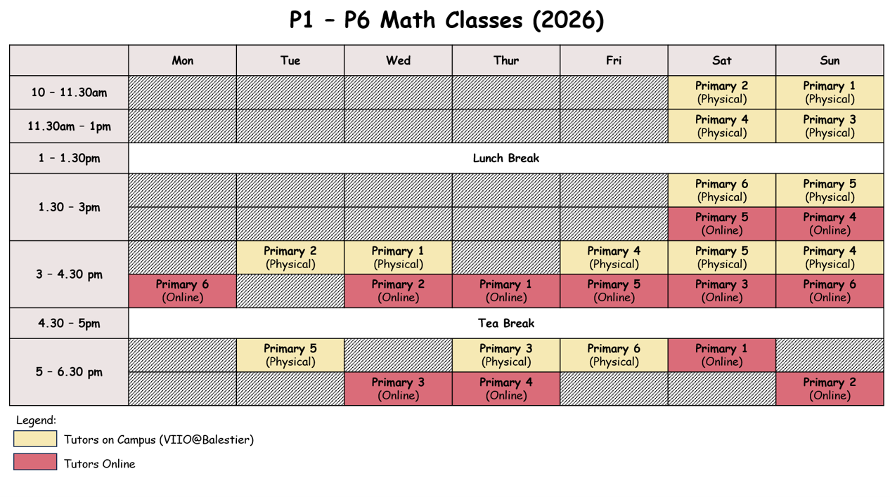 Our P3 - P6 classes will commence on Saturday, 20 Dec 2025. Check out the schedule below.
